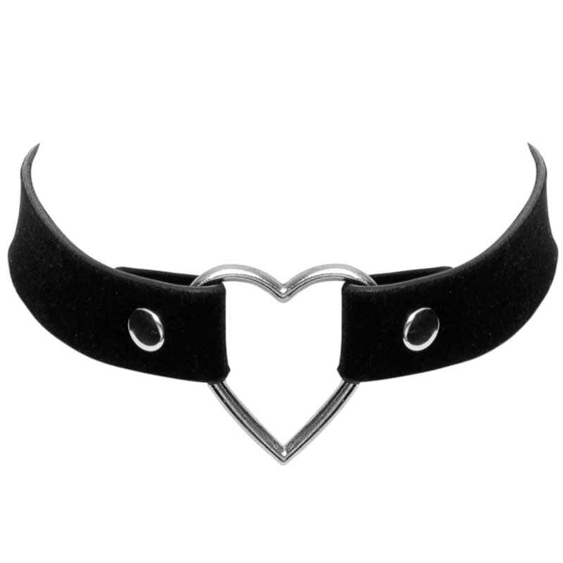 Im Frontbereich zieht ein eingefasstes Metallherz zwischen zwei dekorativen Nieten alle Blicke auf sich. Die silberfarbenen Metallelemente bilden einen edlen Kontrast zum satten Schwarz. Auf der Rückseite lässt sich das Halsband dank Druckknöpfen dreifach im Umfang verstellen – für eine perfekte Passform von 31 cm bis 42 cm.