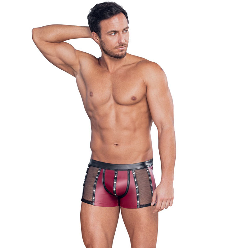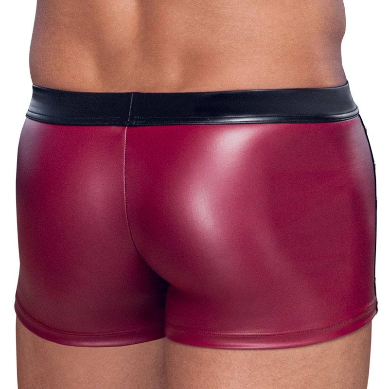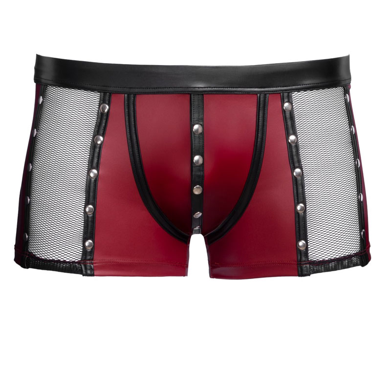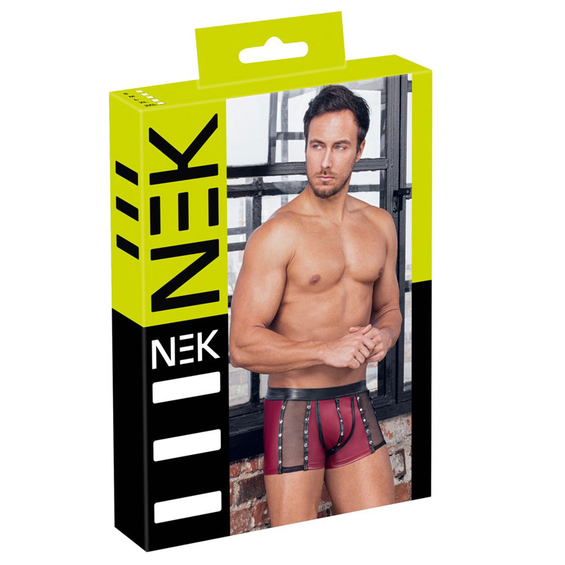 Eng geschnittene Pants von NEK im markanten roten Mattlook mit schwarzen Akzenten und seitlichen Netz-Einsätzen. Die silberfarbenen Nieten suf den Nähten setzen interessante Highlights und geben dem Design eine selbstbewusste Note. Praktisch und stylisch zugleich: Die Druckknopfleiste im Beutel sorgt für flexibles Öffnen. Dank weichem, elastischem Material und komfortablem, bezogenem Bundgummi sitzt alles angenehm und passgenau – für einen Look, der auffällt und sich auch gut anfühlt.