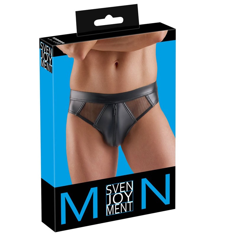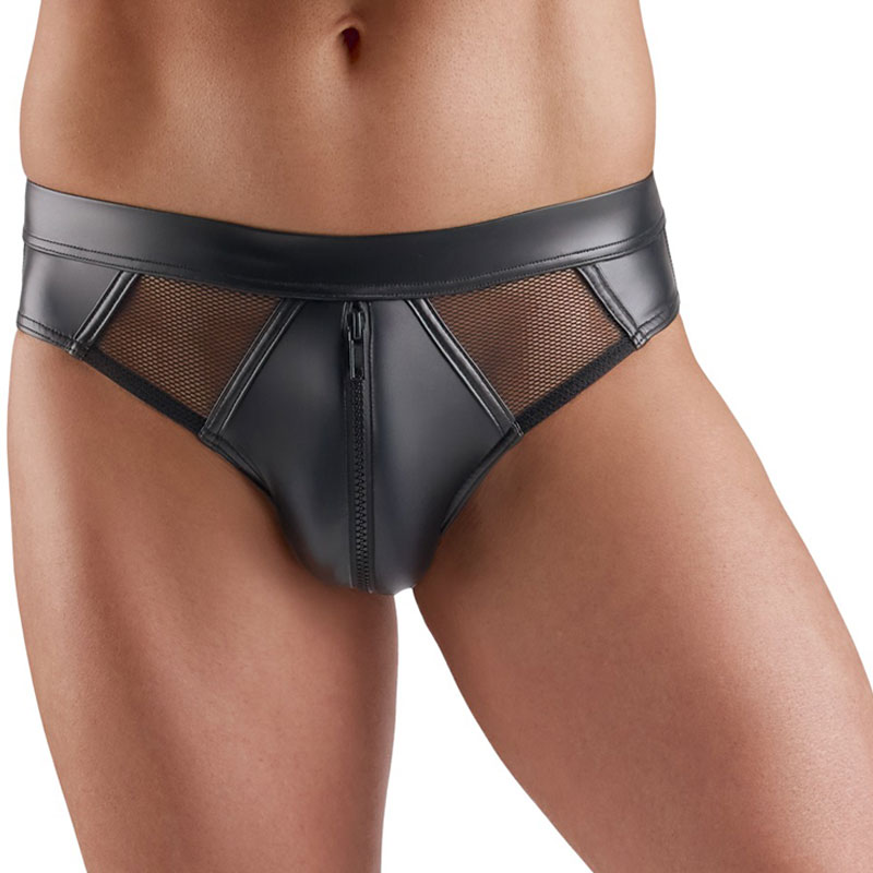 Verführerischer Style mit spannenden Kontrasten! Knackiger schwarzer Slip im sexy Wetlook, der nicht nur Deinen Po perfekt in Szene setzt. Transparente Netzeinsätze vorne sorgen für aufregende Einblicke und einen extra reizvollen Effekt. Der praktische Reißverschluss im blickdichten Beutel setzt ein heißes Detail und macht den Look zugleich funktional und provokant. Weiches, elastisches Material und ein bezogenes Bundgummi schmiegen sich angenehm an – für Deinen Auftritt, der selbstbewusst, verführerisch und maximal komfortabel ist.