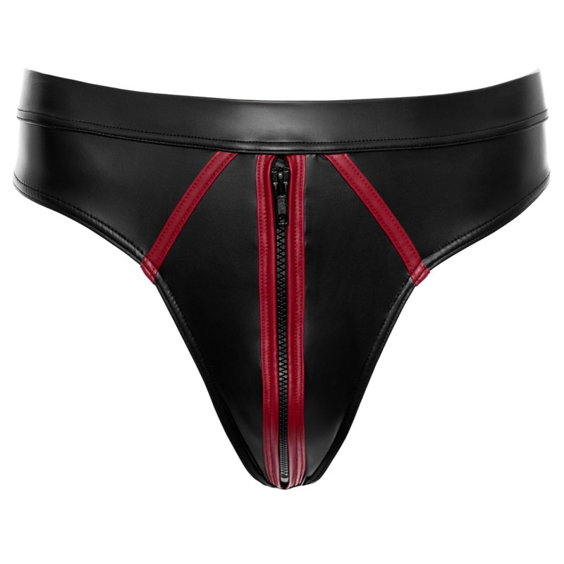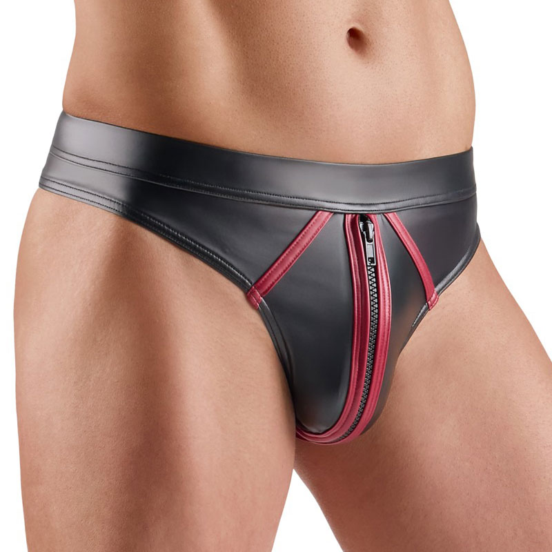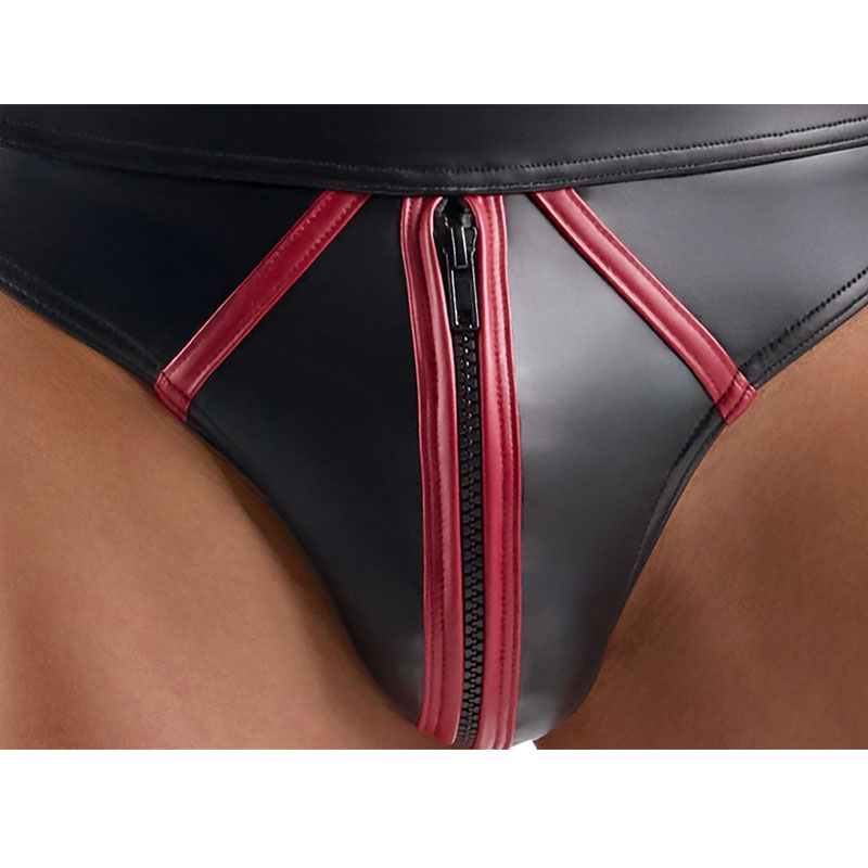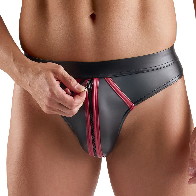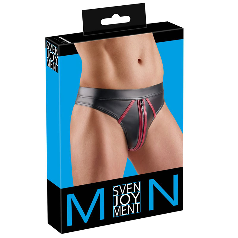 Rasanter Riostring der Marke Svenjoyment im schwarzen Wetlook mit markanten roten Kontraststreifen, die den Front-Reißverschluss aufregend in Szene setzen. Ein Design, das selbstbewusste Akzente setzt und pure Energie ausstrahlt. Weiches, elastisches Material und ein komfortables, bezogenes Bundgummi sorgen dafür, dass der Style nicht nur stark aussieht, sondern sich auch angenehm auf Deiner Haut und sich passgenau trägt.