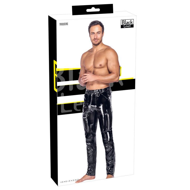 Eine sehr schöne, eng anliegende Skinny-Lackhose von Black Level im tiefschwarzen Hochglanz-Finish. Silberfarbene Metall-Details wie Nieten, Ringe und Reißverschlüsse setzen markante Akzente und unterstreichen den rebellischen Look.