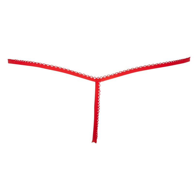 Roter String im Metallic-Look mit schnuckeligem weißem Federbesatz am Bund. Perfekt für die Weihnachtszeit. Da macht das Auspacken doch doppelt Spaß.