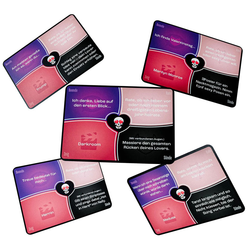 Das Spiel ist sofort einsatzbereit, leicht verständlich und bietet immer neue Impulse. Humor, Intimität und eine subtile erotische Note bringen frischen Schwung in euren Abend und schaffen Erinnerungen, die Lust auf mehr machen.