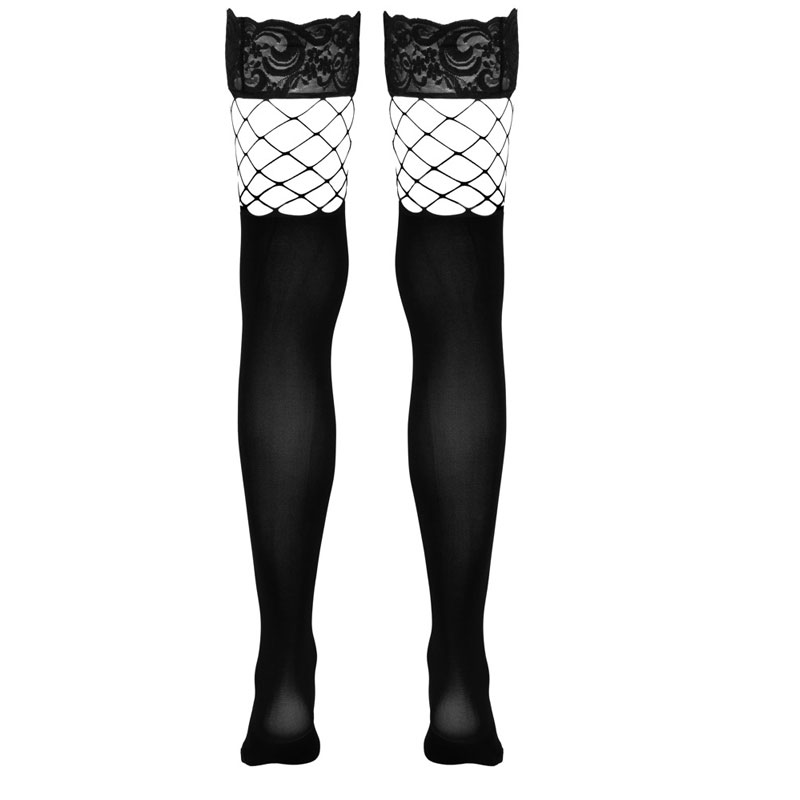Diese besonderen Strümpfe vereinen zwei spannende Styles in einem: blickdichter Strumpf und Netzstrumpf kombiniert in einem modernen 2-in-1-Design. Vom Fuß bis zum Knie sorgen sie für eine elegante, geschlossene Optik – darüber setzt ein grobes Netzmaterial verführerische Akzente und zieht alle Blicke auf die Beine.