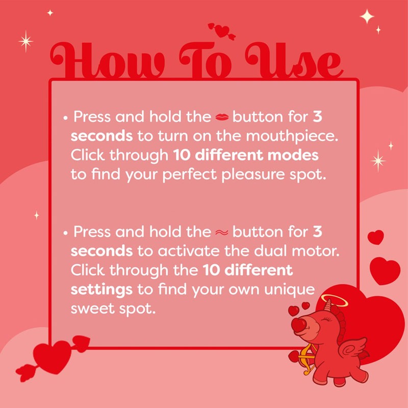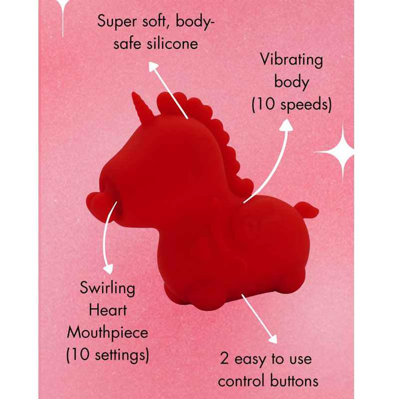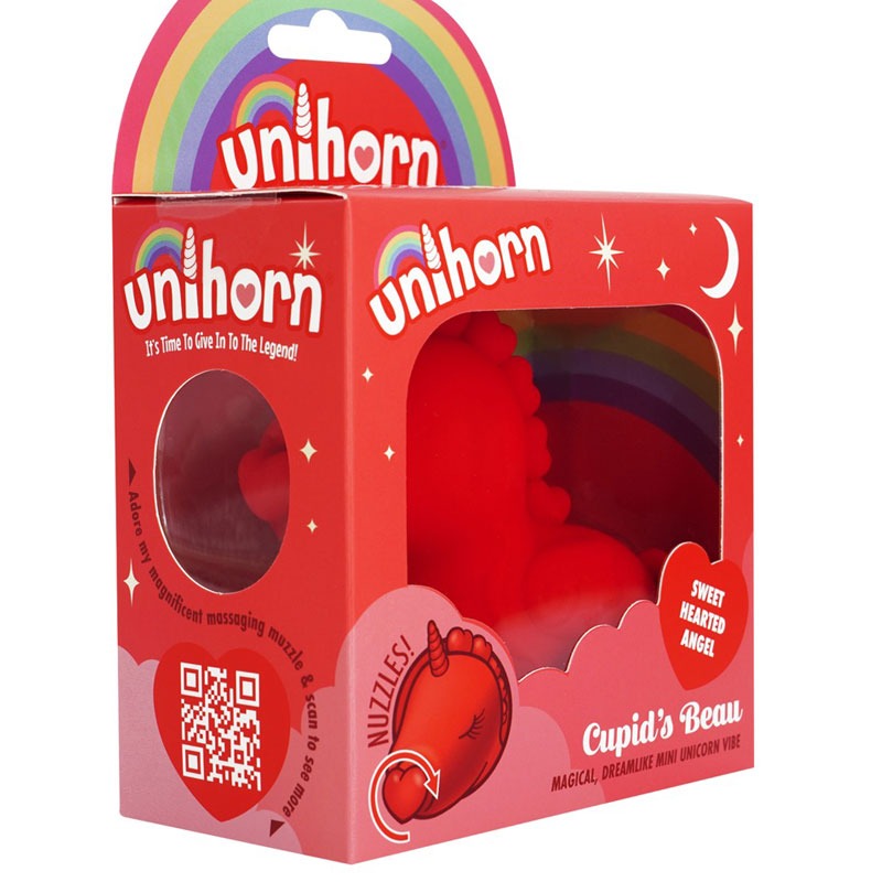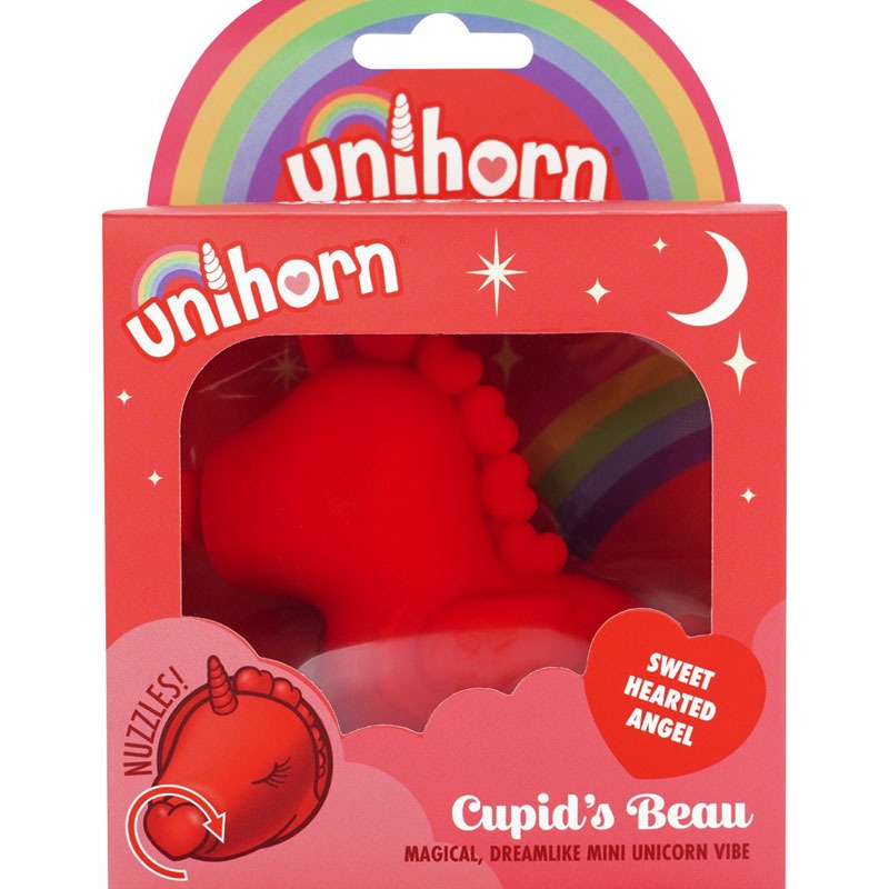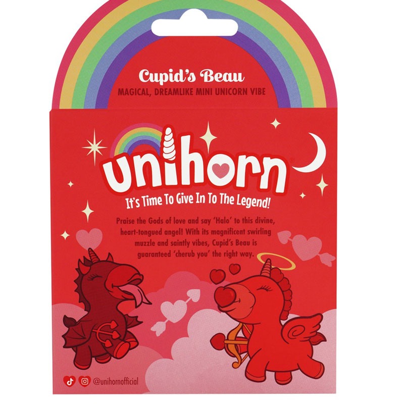 Der Auflegevibrator Cupids Beau (Heart-Tongued Vibrator) von Unihorn begeistert im charmanten Einhorn-Design und verbindet niedliche Optik mit intensiver Stimulation. Gefertigt aus weichem, angenehm griffigem Silikon, entfaltet dieses Toy seine ganz eigene Magie zwischen den Schenkeln.